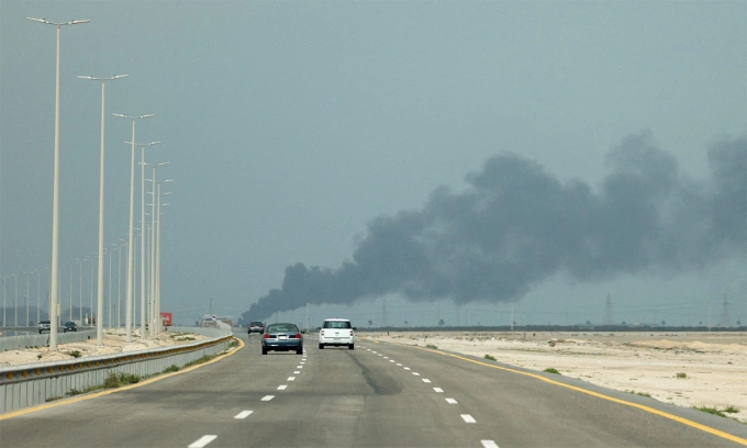 Khói bốc lên sau khi UAV đánh trúng nhà máy lọc dầu Ras Tanura,Arab Saudi ngày 3/2. Ảnh: Reuters