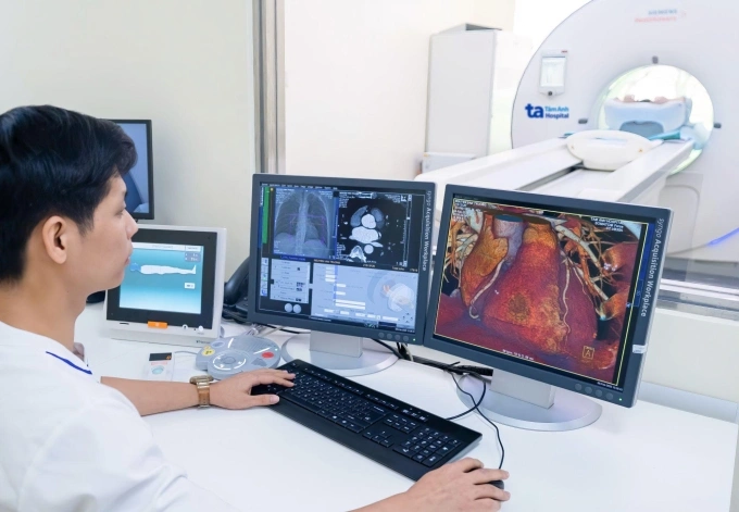 Người bệnh được chụp tầm soát lồng ngực bệnh bằng hệ thống CT Somatom Force VB30. Ảnh: Bệnh viện Đa khoa Tâm Anh