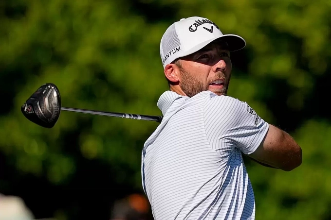 Sam Burns phát bóng ở hố 11. Ảnh: AP