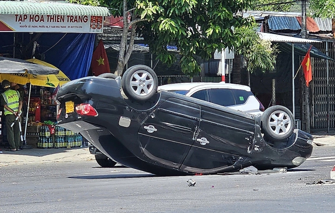 Khoảng 13h,xe chạy theo hướng từ Nha Trang đi sân bay quốc tế Cam Ranh. Khi đến khu vực gần resort Diamond Bay,phường Nam Nha Trang,ôtô bất ngờ lao vào dải phân cách,lật ngửa ở làn đường đối diện,khói bốc lên từ phần cabin.