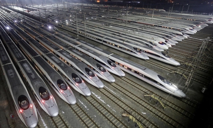 Các tàu cao tốc tại nơi bảo dưỡng ở Vũ Hán,Trung Quốc. Ảnh:Reuters.