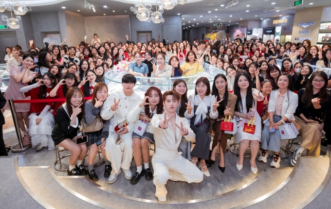 Hùng Huỳnh chụp ảnh cùng fan tại một sự kiện hồi đầu năm.