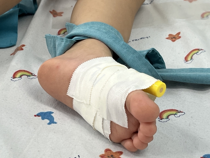 Bàn chân của trẻ mắc tay chân miệng nặng,điều trị tại phòng ICU Bệnh viện Nhi đồng 1. Ảnh: Diệu Thuần